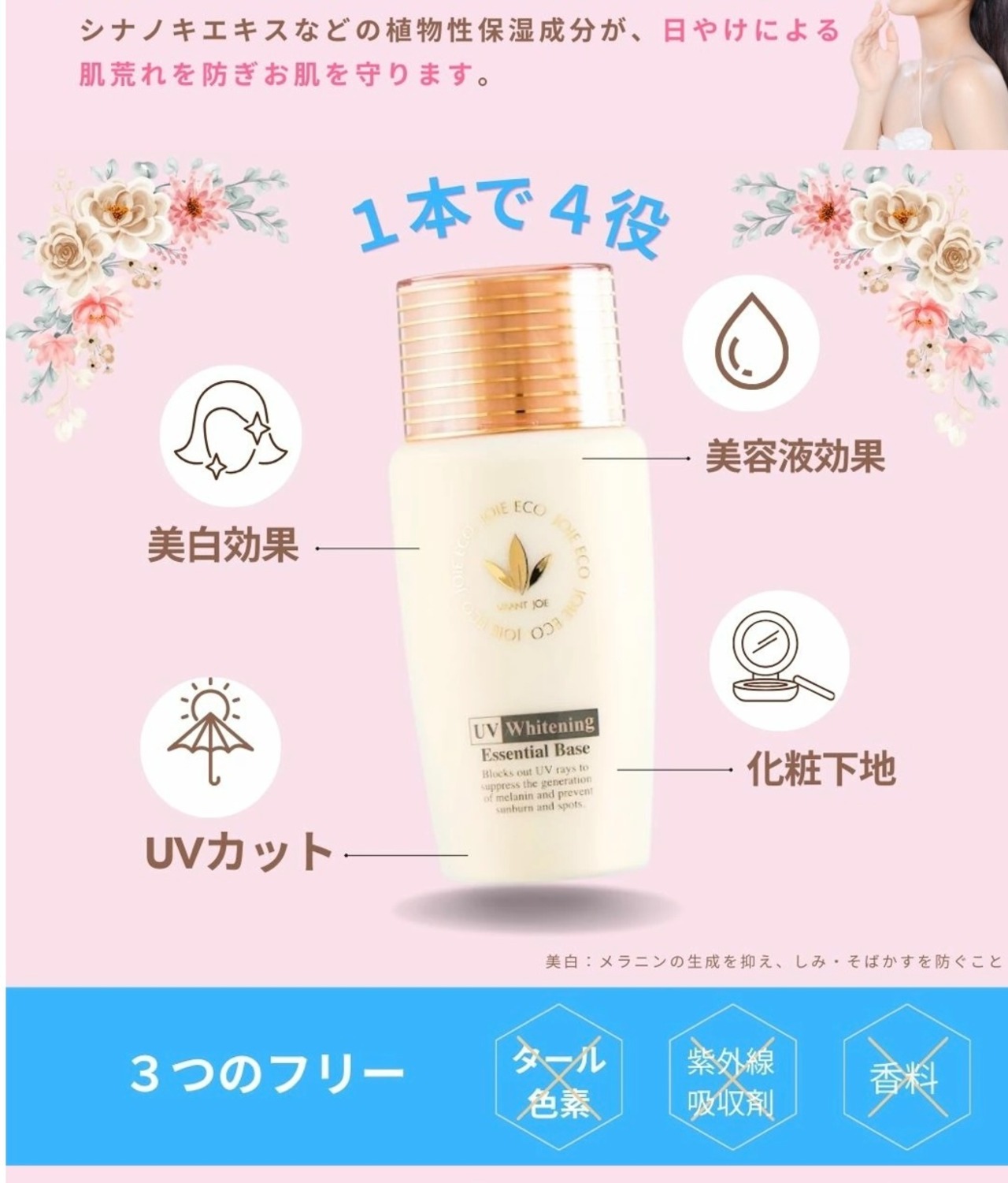ビーバンジョア ジョアエコ470AC 薬用UV美白エッセンシャルベースは、日中もUVケアをしながら、透き通るような美白をサポート。メイクベースとしても保湿美容液としても、これひとつでお肌をしっかりコントロール。