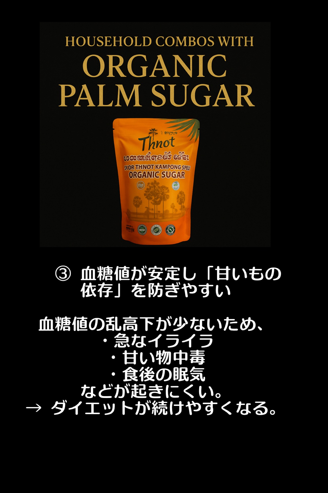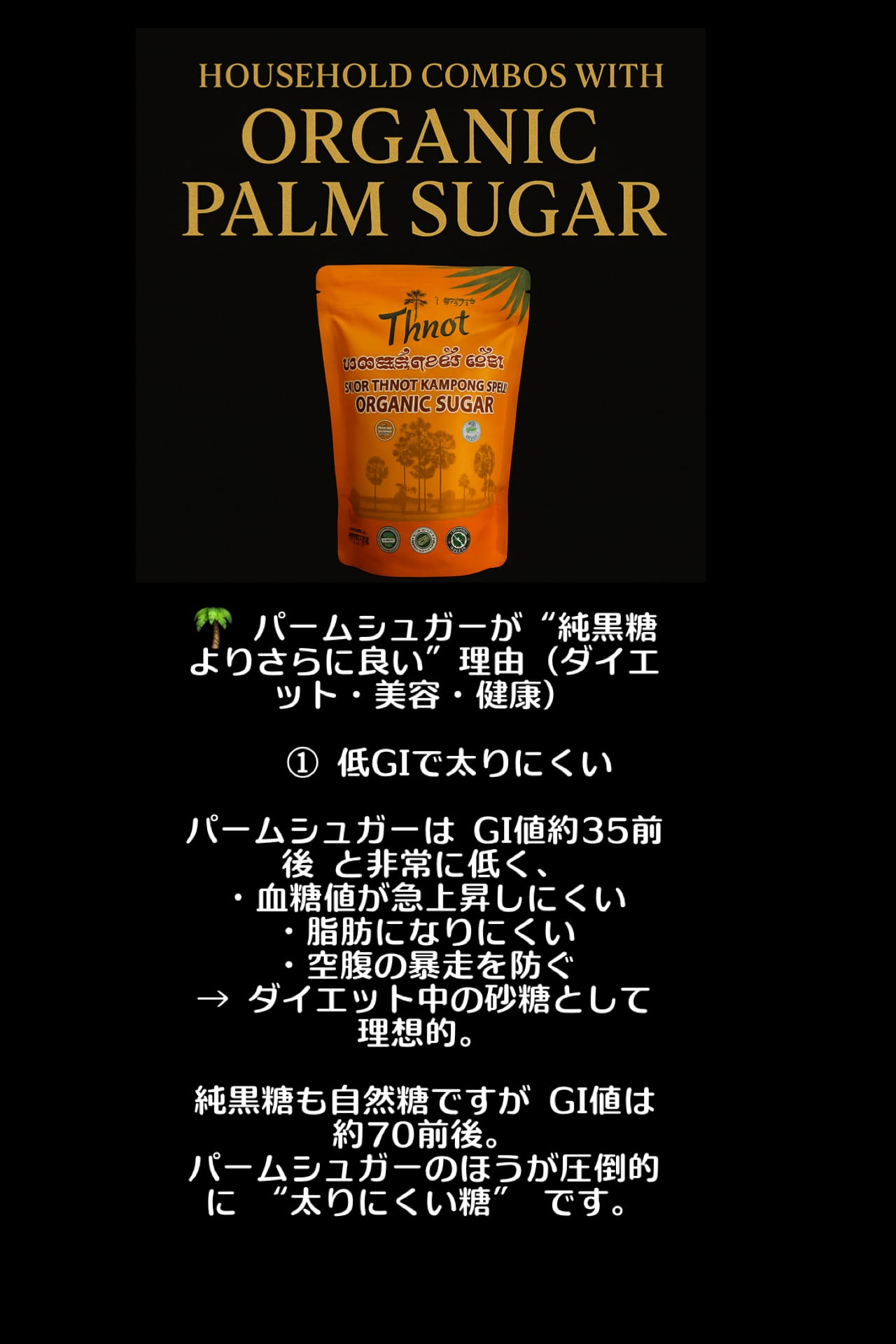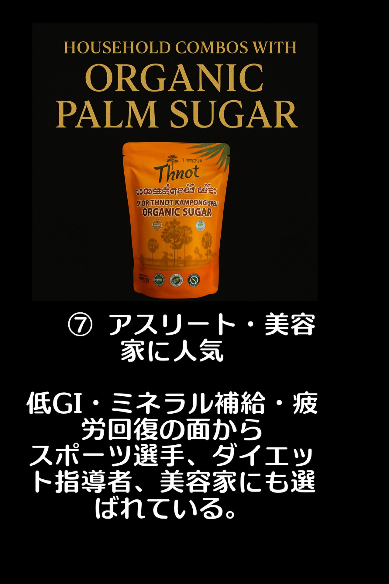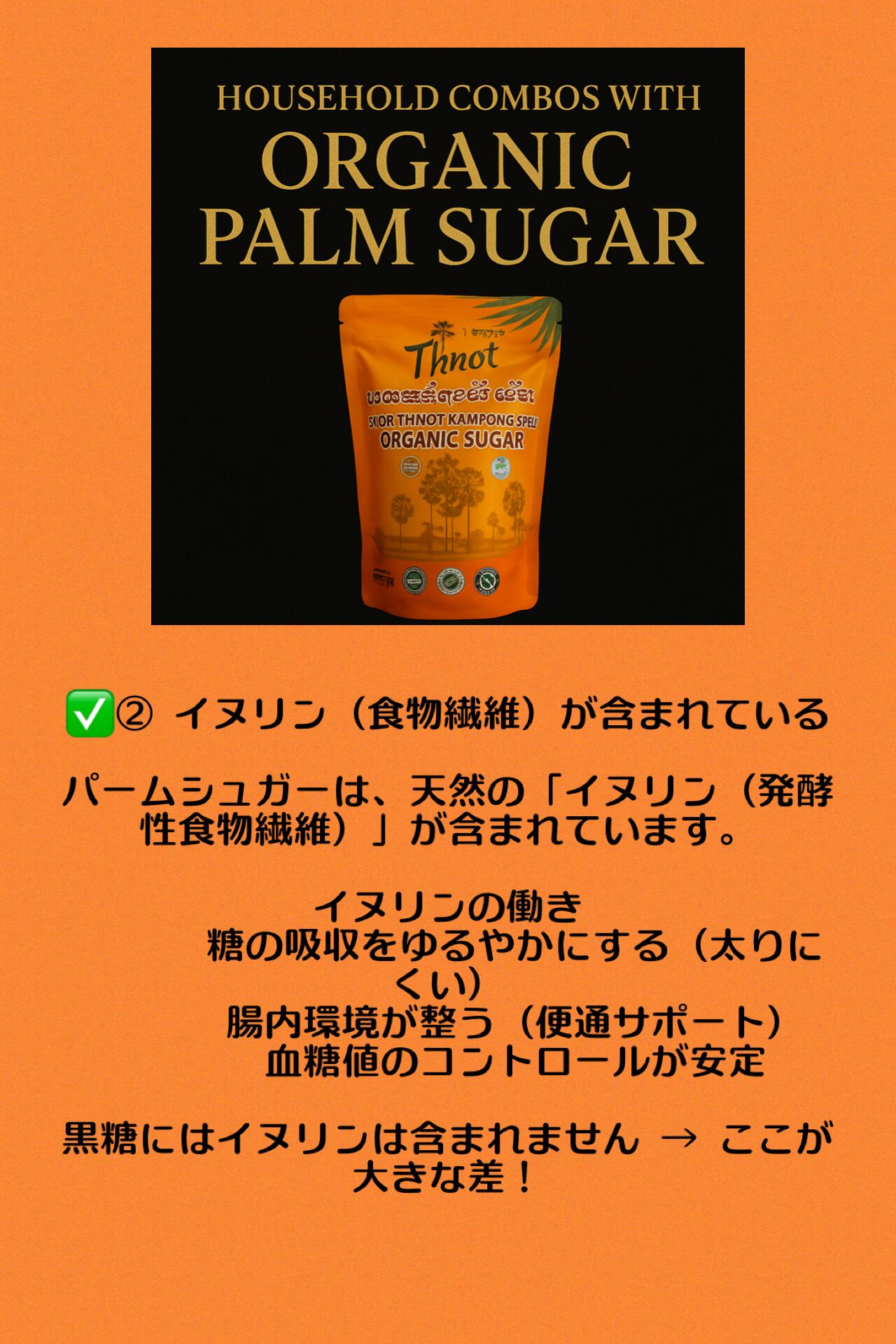 カンボジアの伝統農法でつくられる、ヤシの花序や幹などの樹液を煮詰めて作られる茶褐色のコクのある砂糖です。