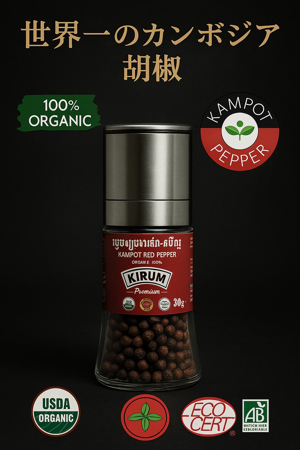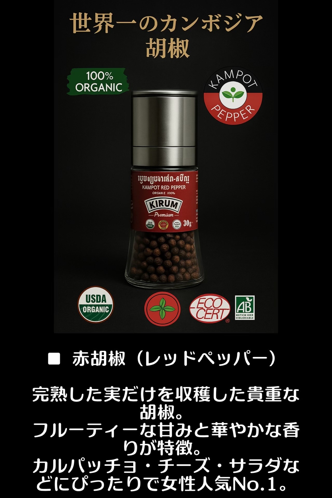 SALE❣️世界1のカンボジア、カンポットレッドペッパーのミル30g