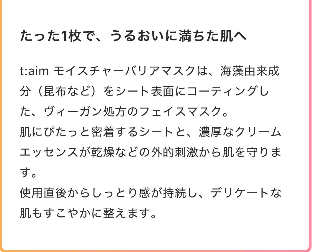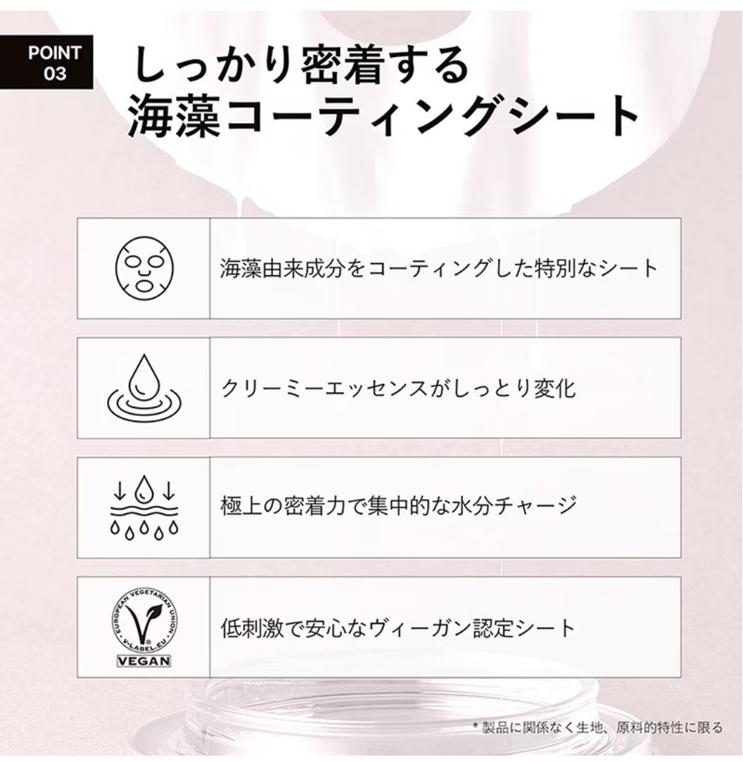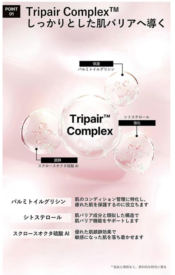 水、DPG、グリセリン、BG、ナイアシンアミド、トリエチルヘキサノイン、ステアリン酸グリセリル、ジステアリン酸ポリグリセリル-3メチルグルコース、ヒドロキシアセトフェノン、ベタイン、(アクリレーツ/アクリル酸アルキル(C10-30))クロスポリマー、アラントイン、カフェイン、トロメタミン、プロパンジオール、カプリリルグリコール、エチルヘキサン酸セチル、キサンタンガム、エチルヘキシルグリセリン、アデノシン、イソステアリン酸ポリグリセリル-10、1,2-ヘキサンジオール、スクワラン、(アクリロイルジメチルタウリンアンモニウム/VP)コポリマー、フィチン酸Na、ペンチレングリコール、オレイン酸ポリグリセリル-10、水添レシチン、トリ(カプリル酸/カプリン酸)グリセリル、アセチルグルコサミン、ヒアルロン酸Na、フナバラソウエキス、β-グルカン、タチアオイ花エキス、ヒアルロン酸クロスポリマーNa、アシタバエキス、タイワンツナソ葉エキス、ヤマノイモ根エキス、オクラ果実エキス、ハス根エキス、トコフェロール、ヘアコンディショニング剤、洗浄剤、水溶性コラーゲン、レシチン、エスシン、シトステロール、(カプリリル/カプリル)グルコシド、マカデミア種子油、スクロースオクタ硫酸Al 、アブラナステロールズ、コレステロール、ラウロイルグルタミン酸ジ(オクチルドデシル/フィトステリル/ベヘニル)、サーファクチンNa、セルロース、セラミドNP、EDTA-2Na