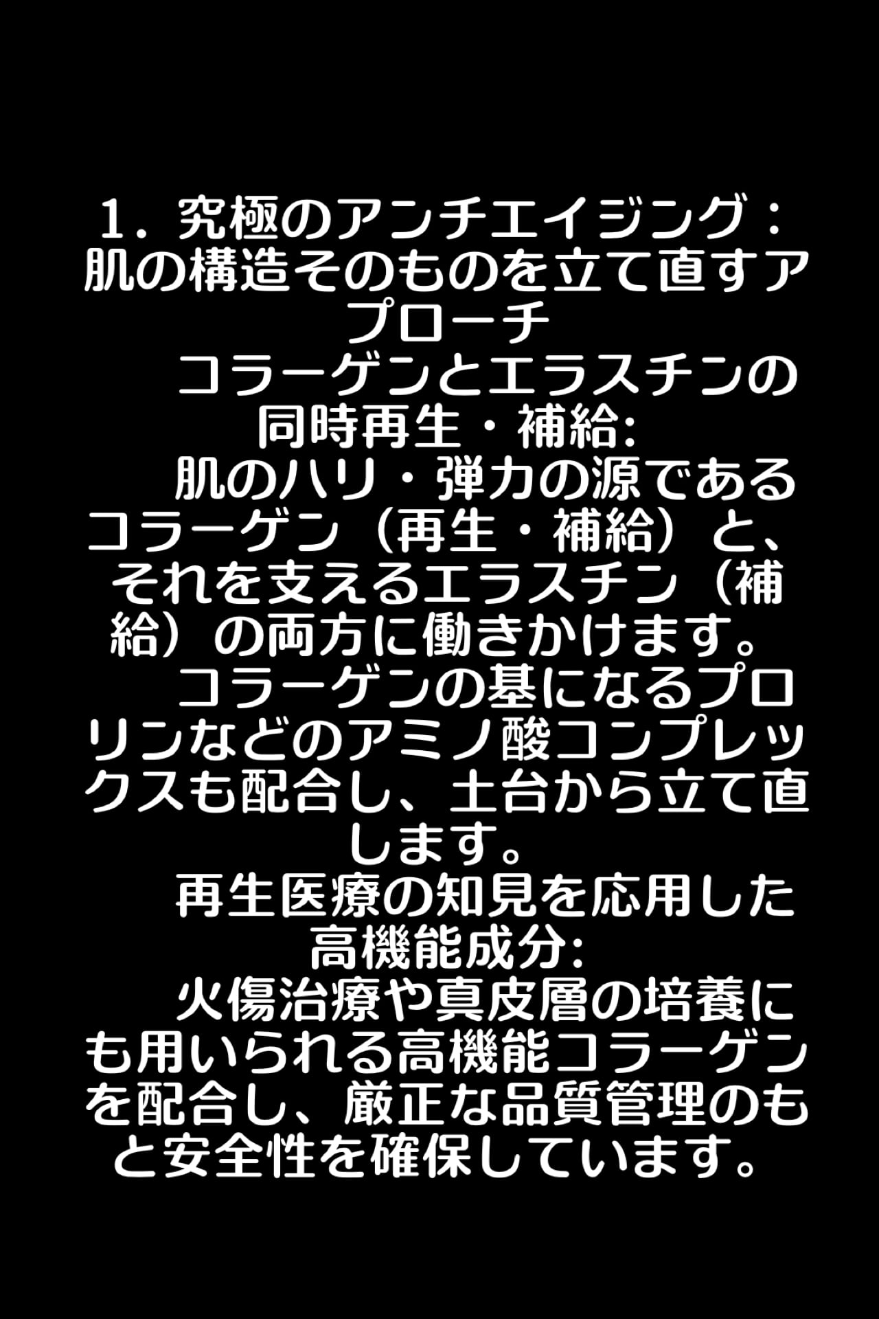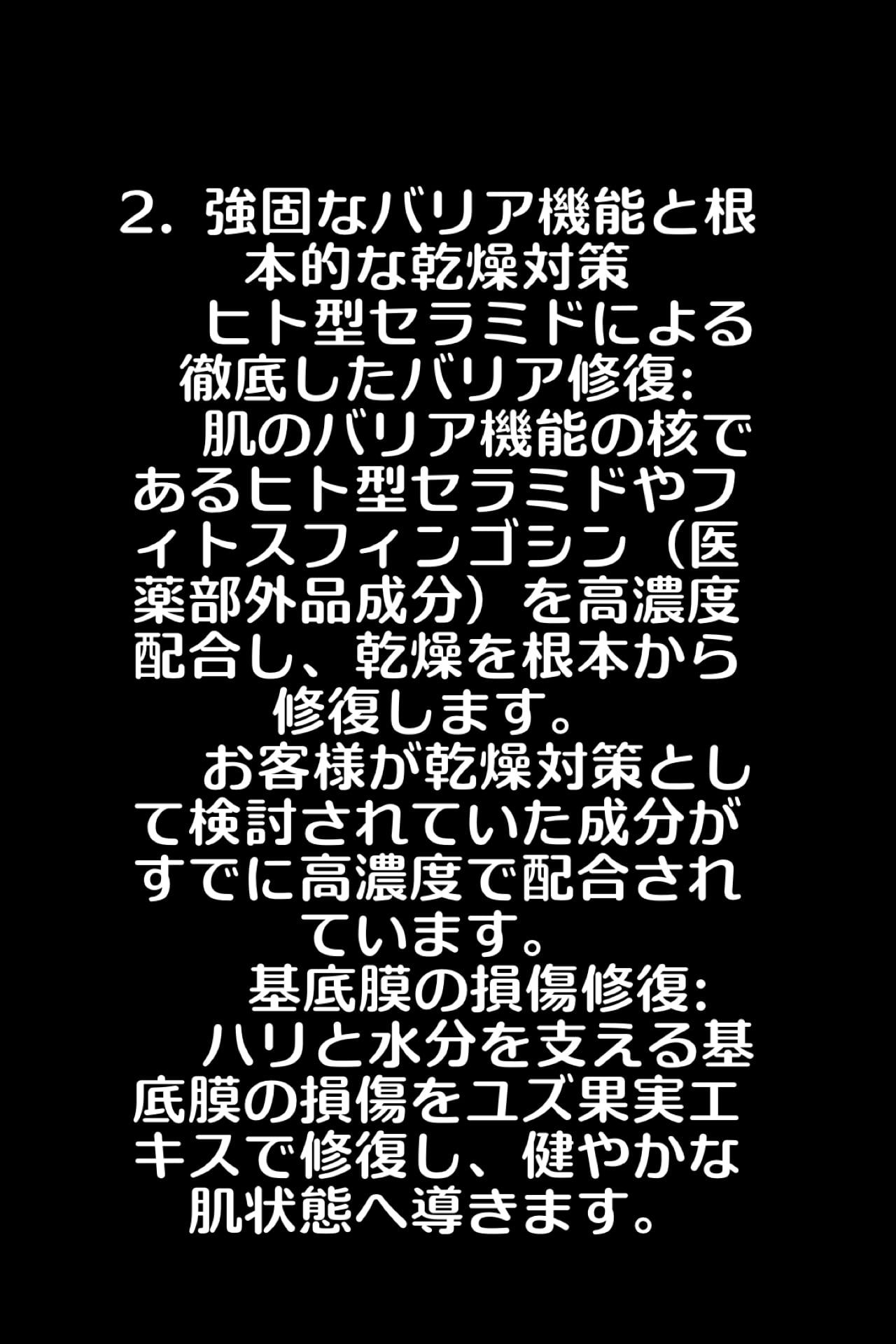 保湿、エイジングケア,肌質改善,バリア機能,皮膚再生,肌の弾力,張り、弛み、シミ,シワ,毛穴黒ずみなどトータル的なお悩みに